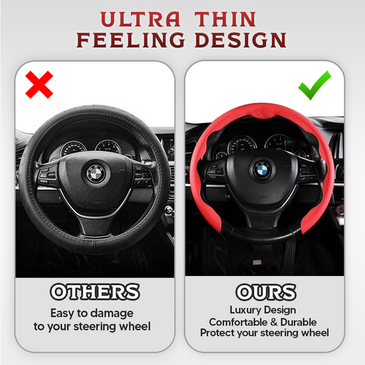Customized Car Logo Breathable Ultra-thin 5D Leather & Carbon Car Steering Wheel Cover Universal Fit